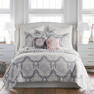 - COORDINATE YOUR HOME: Create a wonderful space with our coordinated Belhaven Collection. The cream and blush design brings embroidered damask accents into your home and will match a variety of different looks. You can also freshen your room with complementary quilts sets, euro shams and throws from the Levtex Home collection.