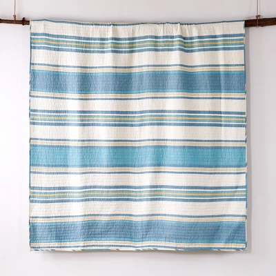 - THE BLUE MAUI DESIGN: One of our most popular quilt sets, Blue Maui is inspired by the colors of the Hawaiian coast, with a simple, striped design in light blue, cream and tan and a charming reverse pattern of starfish. A bound border provides contrast and texture to complete the look.
