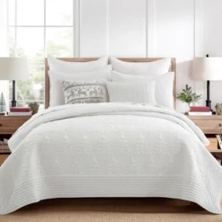 The Reindeer decorative pillow matches perfectly with the Levtex Home O Christmas Tree bedding collection. This pillow is sized at 18x18in. and features intricately stitched rows of reindeer and ornaments in an array of neutral tones on a textured ground The taupe, cream color palette makes this a versatile accessory for your bed, couch or favorite chair. The pillow comes pre-filled with a soft, luxurious feather inner.